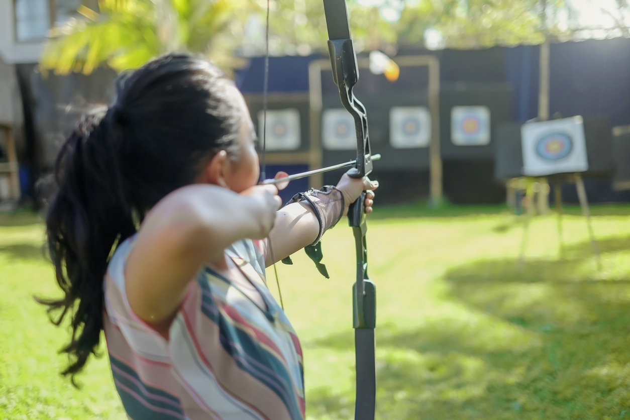 Beim Bogenschießen konzentrieren wir uns auf unsere Körperhaltung, den Bogen, den Pfeil, das Ziel. Mit jedem Pfeil, den du loslässt, kommst du dir selbst ein bisschen näher. Irgendwann ist alles eins. Du, dein Bogen, dein Ziel. Du bist das Ziel.